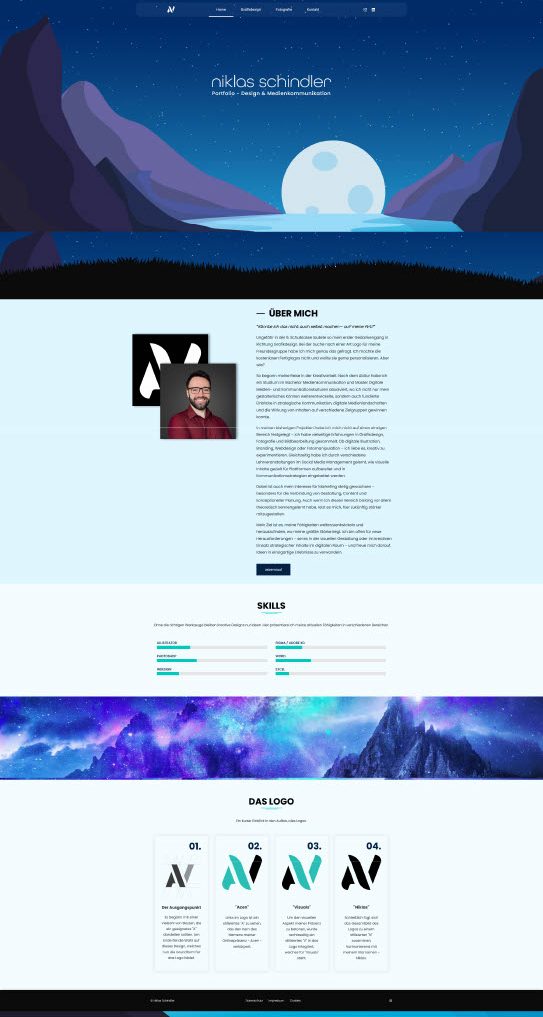 Learnings. Im Prozess habe ich gelernt, dass manchmal einfachere Designs besser funktionieren als grafisch explosive Ideen. Gerade bei einem Portfolio sind schnell erreichbare Informationen wichtiger als ein wahnsinnig farbenfroher Hero. Es hat sich auch gezeigt, dass Feedback durch externe Personen äußerst wichtig ist, um andere Blickwinkel für ein Design zu erhalten. Gerade Personen außerhalb der Kreativbranche können wichtiges funktionales Feedback geben, weil sie eher die Funktion der Seite statt pures Design sehen.